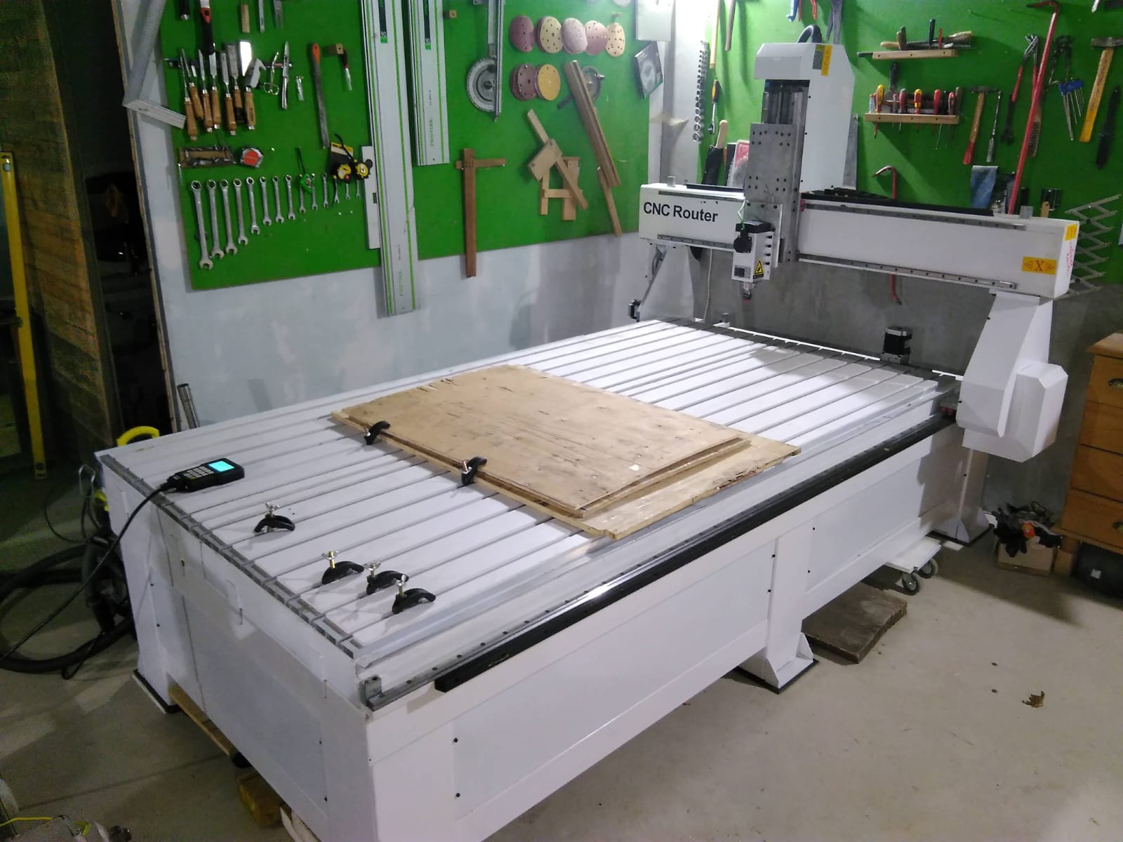 Martin je klikař. Když vezmu kolik náhod se najednou stalo, tak tomu nemohu ani uvěřit, jak vše klaplo. Našel si mě na fóru a dali jsme se do řeči. Z prvotních informací, které jsem z Martina tahal, to vypadalo bledě. Dostal jsem z něj, že nemá moc času a s vědomostmi o elektronice byl na začátku. Toto se všeobecně s Linuxovým světem moc neslučuje. Pak se zmínil o tom, že má kamárády, kteří rozumí programování, elektronice a dokonce jsou Linuxoví nadšenci. To najednou začalo měnit situaci a domluvili jsme o zápujčce mojí záložní 7i96. Až si sežene vlastní, tak mi ji vrátí. Dále jsem ho zaúkoloval ať si sežene PC s vhodnou latencí. Když mi okamžitě dal zpětnou vazbu, že jej již má, tak jsem se rozhodl, že mu pomůžu. Měl jsem volno, slabou chvilku, chuť si zrealizovat další integraci LCNC a dokonce i čas. Lákalo mě si vyzkoušet integraci LCNC na stroj s gantry osou a původně jsem myslel, že si budu hrát s Modbusem u měniče vřetene. Měnič po Modbusu nedopadl, ale to nevadí. Martin uspořádal takový workshop, kde cílem bylo rozchodit jeho stroj alespoň tak, aby na něm mohl realizovat své zakázky. Každý jsme s něčím přispěli a když jsem odjížděl, tak stroj byl připraven pro používání. Foto stroje mám pouze ještě z dob, když byl řízen AutoRich systémem.