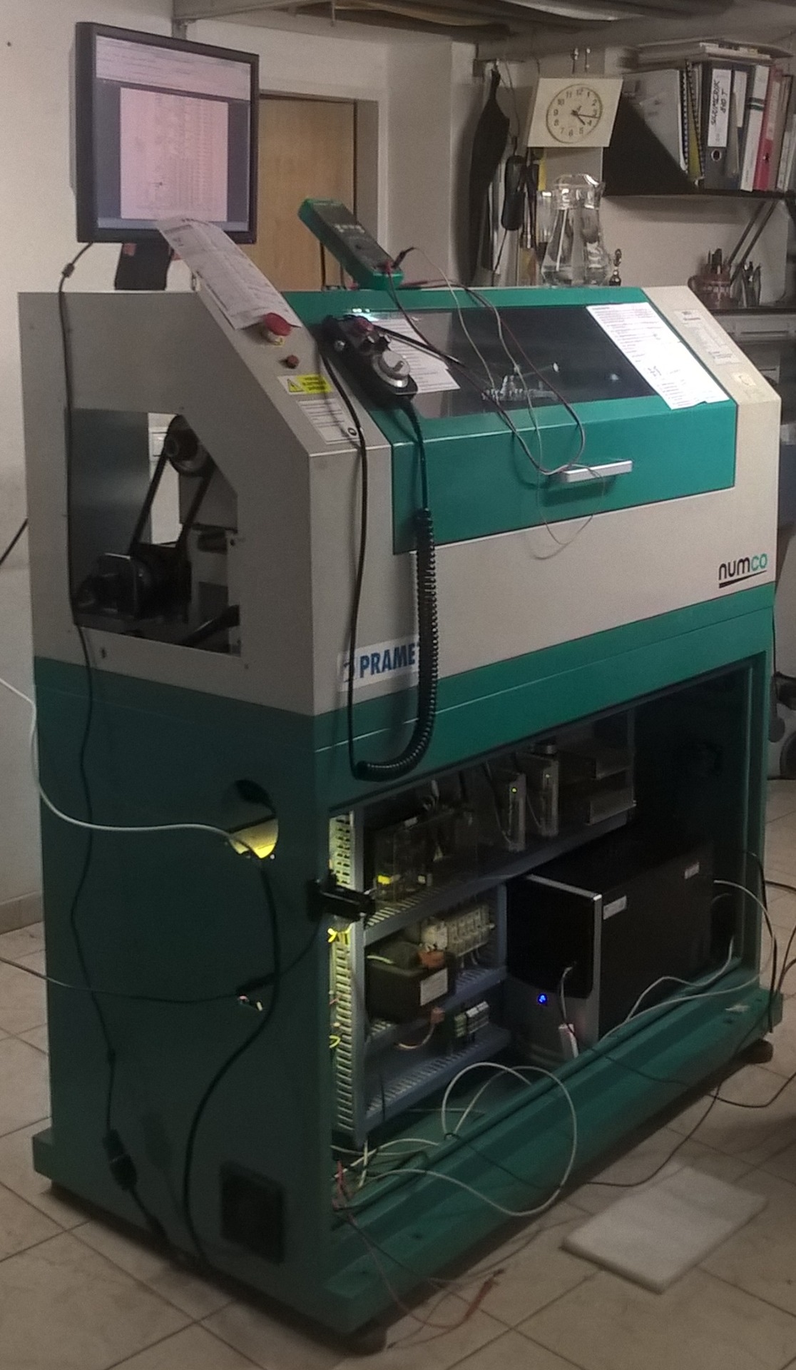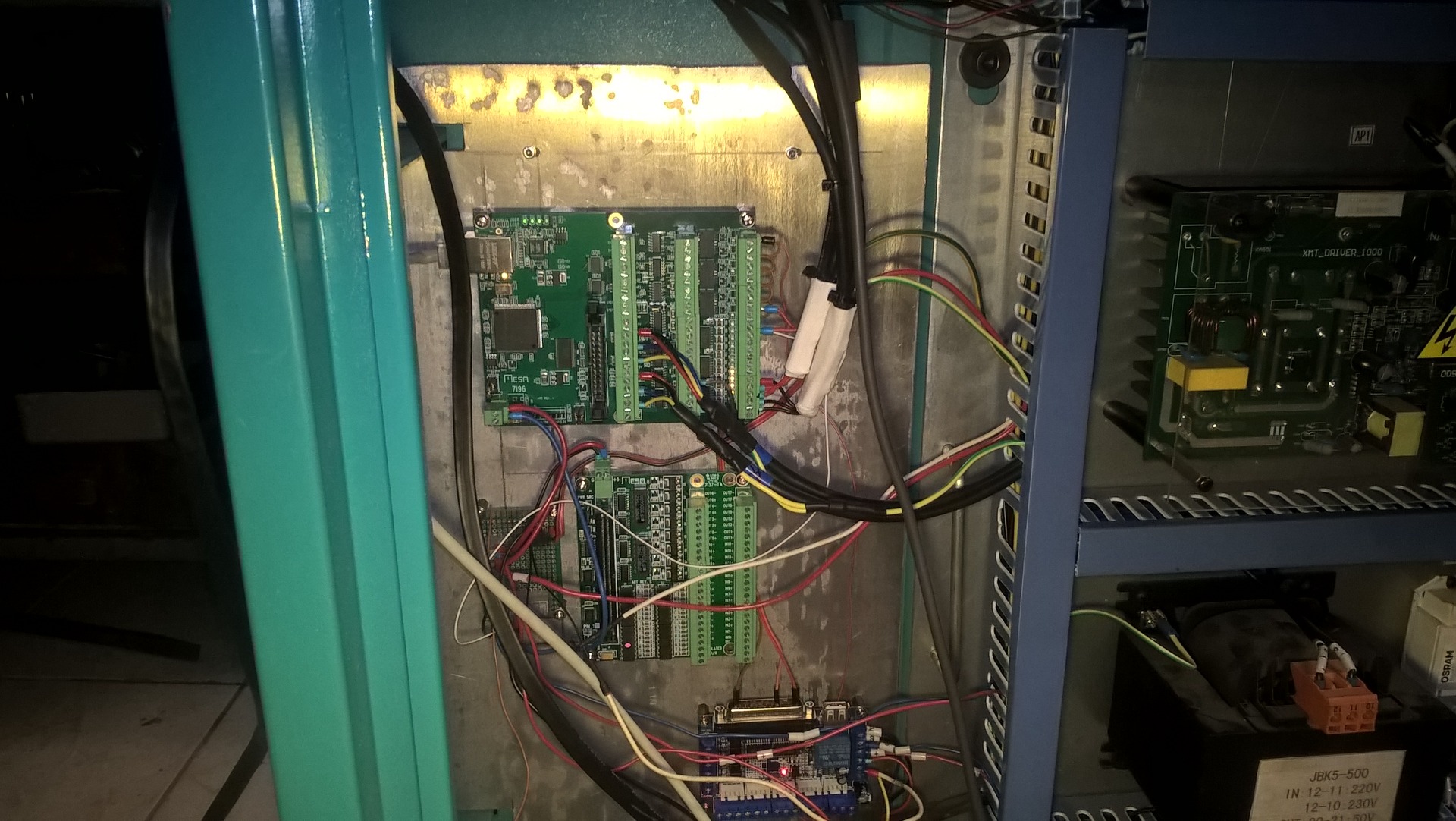 Opět se jedná o kamarádův stroj (další kamarád). Tento stroj koupil jako nefunkční. Nejvíce času u tohoto stroje zabrala archeologie a snažení se o pochopení záměrů autora původní elektroinstalace. Stroj byl původně řízen MACH3 + paralelní port + nějaká oddělovací deska. Postupem času jsme přišli na to, že nefunguje LPT port a na oddělovací desce jsou po smrti některé integrované obvody. Zkušenost z tohoto projektu jsem si odnesl, že kdybych rovnou zahodil tu oddělovací desku a LPT port, rovnou smazal MACH3 tak by mi to ušetřilo hodně času. Jednalo se asi o nějakou speciální verzi určenou pro školy, poněvadž návod neodpovídal skutečnosti. Nedovedu si představit jakou měl výrobce představu, že se na tom budou vyrábět závity, když do systému nebyla zapojena žádná informace o poloze vřetena.. Stroj jsme dovybavili enkodérem na vřeteni a dodali ruční kolečko.