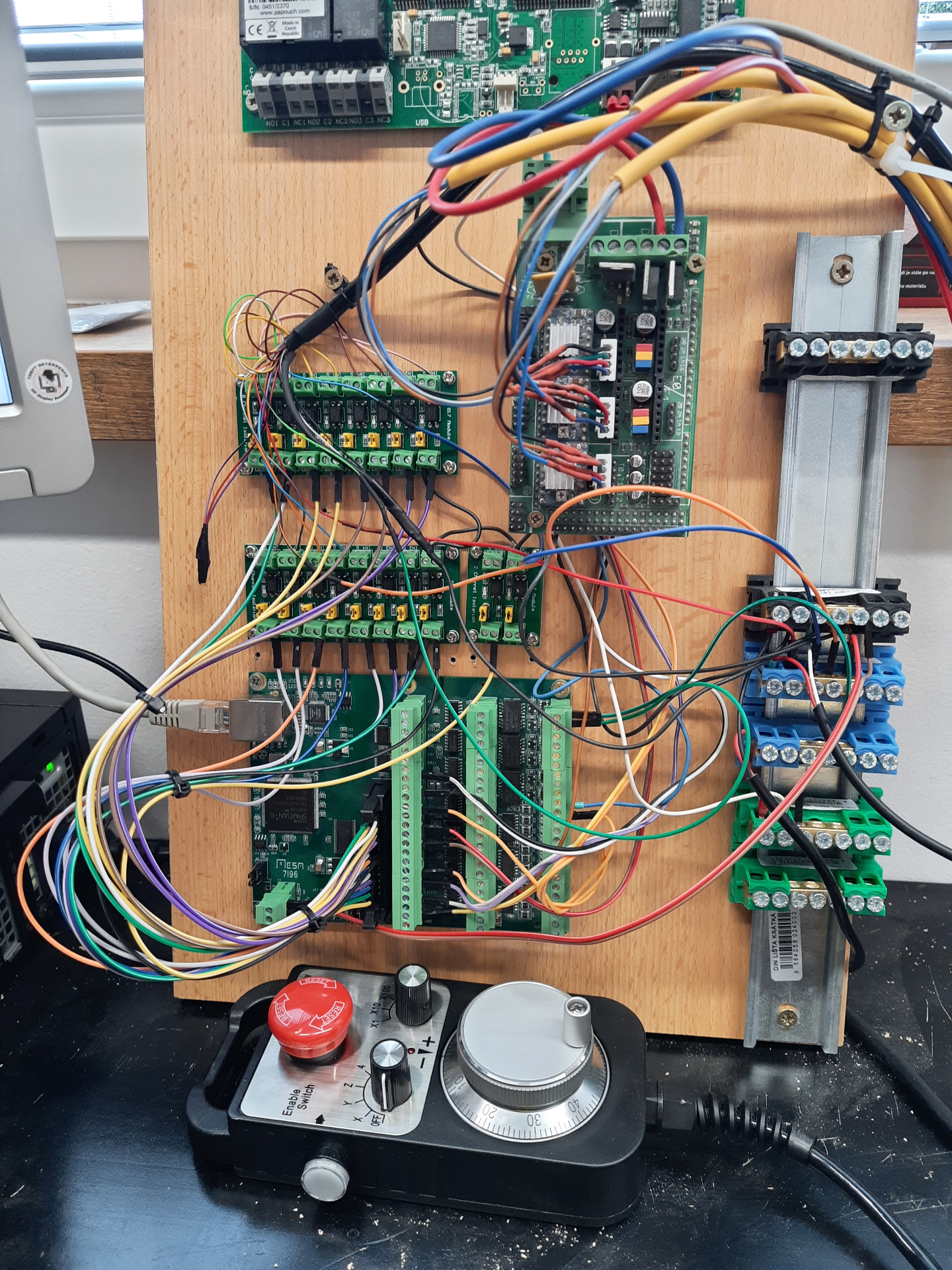 Při prvním použití konektoru jsem použil rozšiřující Mesa kartu 7I37TA. Problém byl v tom, že Mesa 7i96 má P1 25-ti pin a 7I37TA má 50-ti pin. Tudíž to nebylo Plug and Play, ale člověk musel nastudovat manuály a obě karty propojit po pinech vodiči.