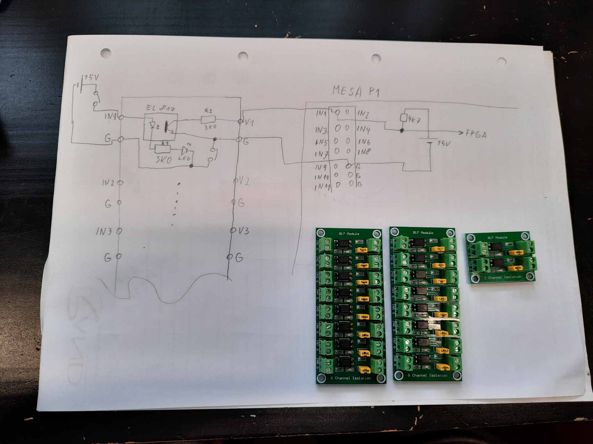 Pokud jen překlemujeme rezistor R2 funguje modul od 5V výše spolehlivě. Problém nastane, když máme napětí nižší než 5V. Pokud napájíme Mesa kartu a příslušenství z USB, nebo z nějakého 5V měkkého zdroje, tak můžeme naměřit na jeho výstupu i 4,7V, což už dělá modul nefunkční, nebo nespolehlivý. První možnost jak upravit modul pro provoz 5V +/- 1V je snížit hodnotu rezistoru R1, abychom zvýšily proud procházející diodou v optočlenu. Nevýhoda tohoto řešení je, že se zvýší i proud v indikační led a ta svítí jak blázen. Druhá možnost je přidání rezistoru R3 dle následujícího obrázku. Tímto řešením se zvýší jen proud protékající diodou optočlenu a dokonce se i sníží proud v indikační diodě.