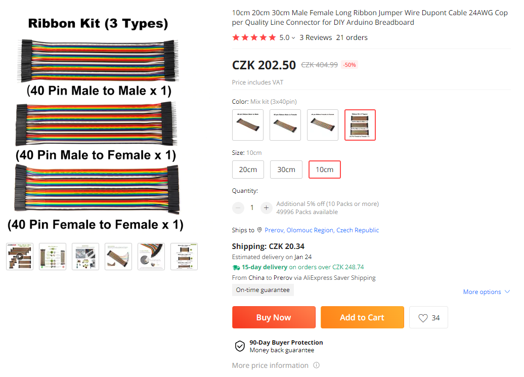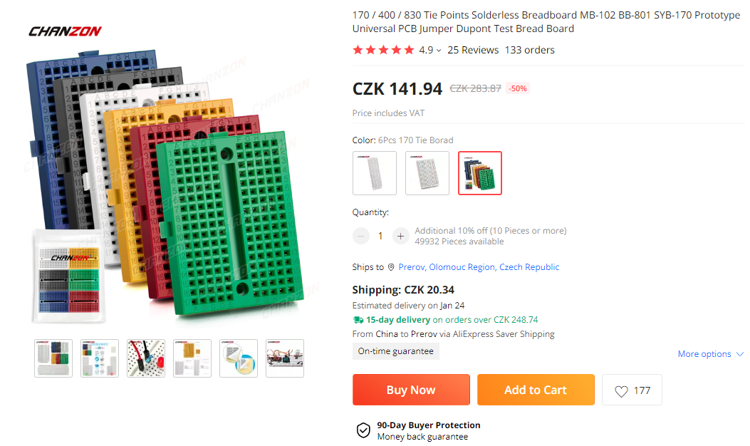 Jelikož se nám nebude chtít vše pájet, tak si můžeme pomoct s nepájivým polem a kablíky.