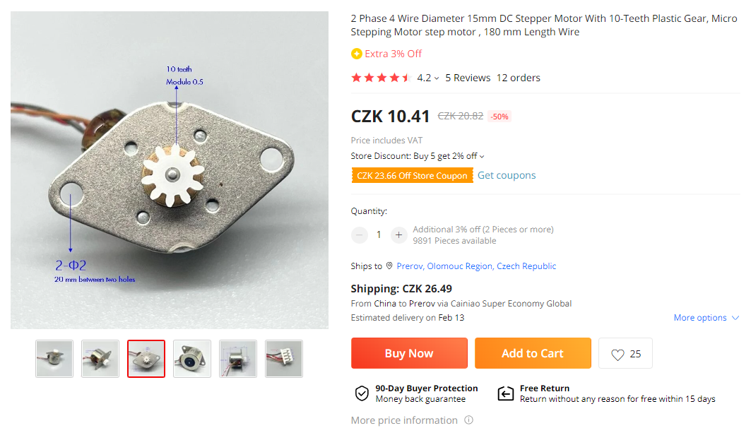 Pro seznámení se s dvoufázovým krokovým motůrkem si koupíme driver a patici s kondenzátorem. Krokový motůrek lze vytáhnout z CD-romky.
